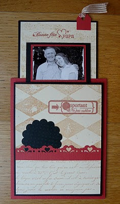 Une seconde carte, sur le même modèle, que j'ai envoyé cette fois ci à Carobalou alias Fanfan pour la remercier d'avoir été si gentille et surtout si patiente avec moi pour la réalisation de ma bannière que j'adore ! J'ai accompagné cette petite carte d'un tampon et d'un mini album qu'elle pourra scrapper selon ses envies. En espérant que cela lui aura fait plaisir.